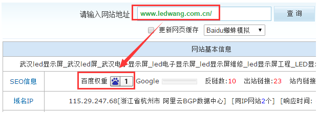 由于SEO優化不是一天兩天的事情,同時根據優化的進程,網站的整體情況也在發生變化,所以網站優化的工作環節和進程以及優化策略也在每一個優化階段隨之井然有序的調節,就這樣用了不到40天的時間,就將一個原本問題百出的網站拯救了回來,并將指定的“武漢led顯示屏”成功優化到首頁。